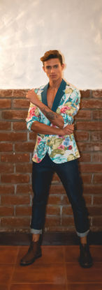 Nuestra segunda colección y primera pasarela estuvo inspirada en la epoca de los años 20 específicamente en el personaje de El Gran Gatsby. Jay Gatsby es un misterio, el hombre que se inventó a si mismo. Nadie sabe de donde ha salido. Nos inspiramos en la edad del Jazz, en los felices y cinematográficos años veinte, en New York, en los colores y estampados de la época.